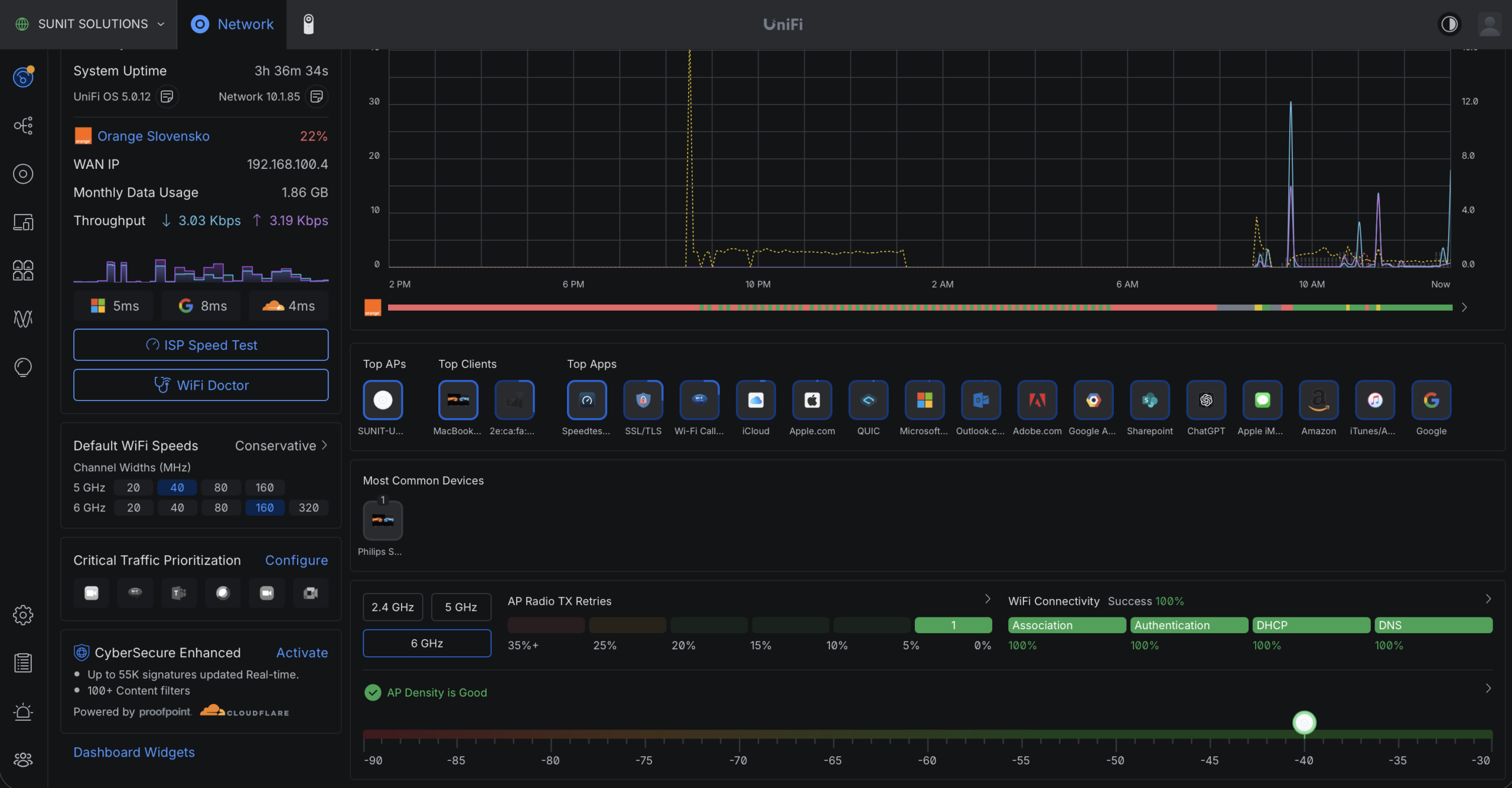 Základná bezpečnostná výbava UniFi zahŕňa firewall, VLAN segmentáciu a IDS/IPS systém. Tieto funkcie sú dostupné bez dodatočných poplatkov, čo je veľká výhoda oproti konkurencii. V testovaní som overil aj deep packet inspection, ktorý poskytuje prehľad o typoch prevádzky. Systém dokáže identifikovať potenciálne hrozby a reagovať na ne v reálnom čase.